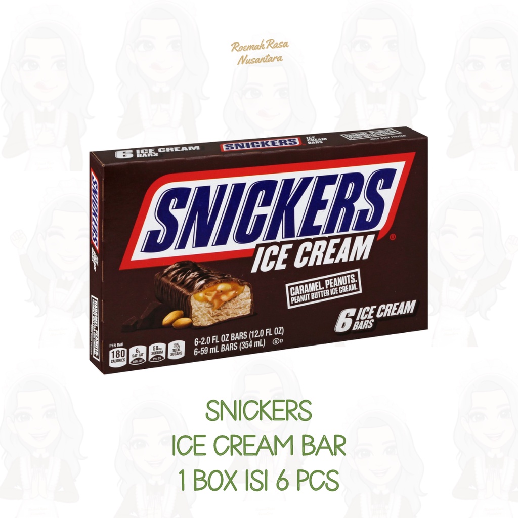 SNICKERS Ice Cream Bar, 2.0 oz | SNICKERS® Made with creamy peanut butter ice cream, smooth caramel and crunchy peanuts and covered in a chocolate shell, SNICKERS Ice Cream Bars are a delicious treat that take satisfaction to a new, frozen level. WHERE TO BUY Nutrition Serving Size 1 bar (48g) Amount per serving % Daily value Calories 180 Total Fat 11 g 14% Saturated Fat 6 g 30% Trans Fat