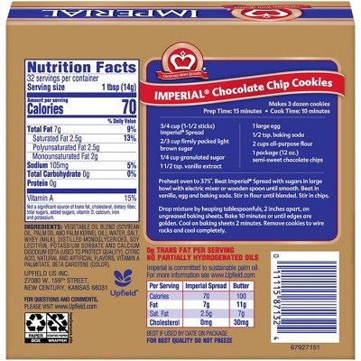 Amazon.com: Imperial, Buttery Sticks, 16 oz : Grocery & Gourmet Food Vegetable Oil Blend (Palm, Soybean, and Palm Kernel Oils), Water, Salt, Distilled Monoglycerides, Soy Lecithin, Potassium Sorbate and Calcium Disodium EDTA (Used to Protect Quality), Pea Protein, Citric Acid, Natural and Artificial Flavors, Vitamin A Palmitate, Beta Carotene (Color). Legal Disclaimer