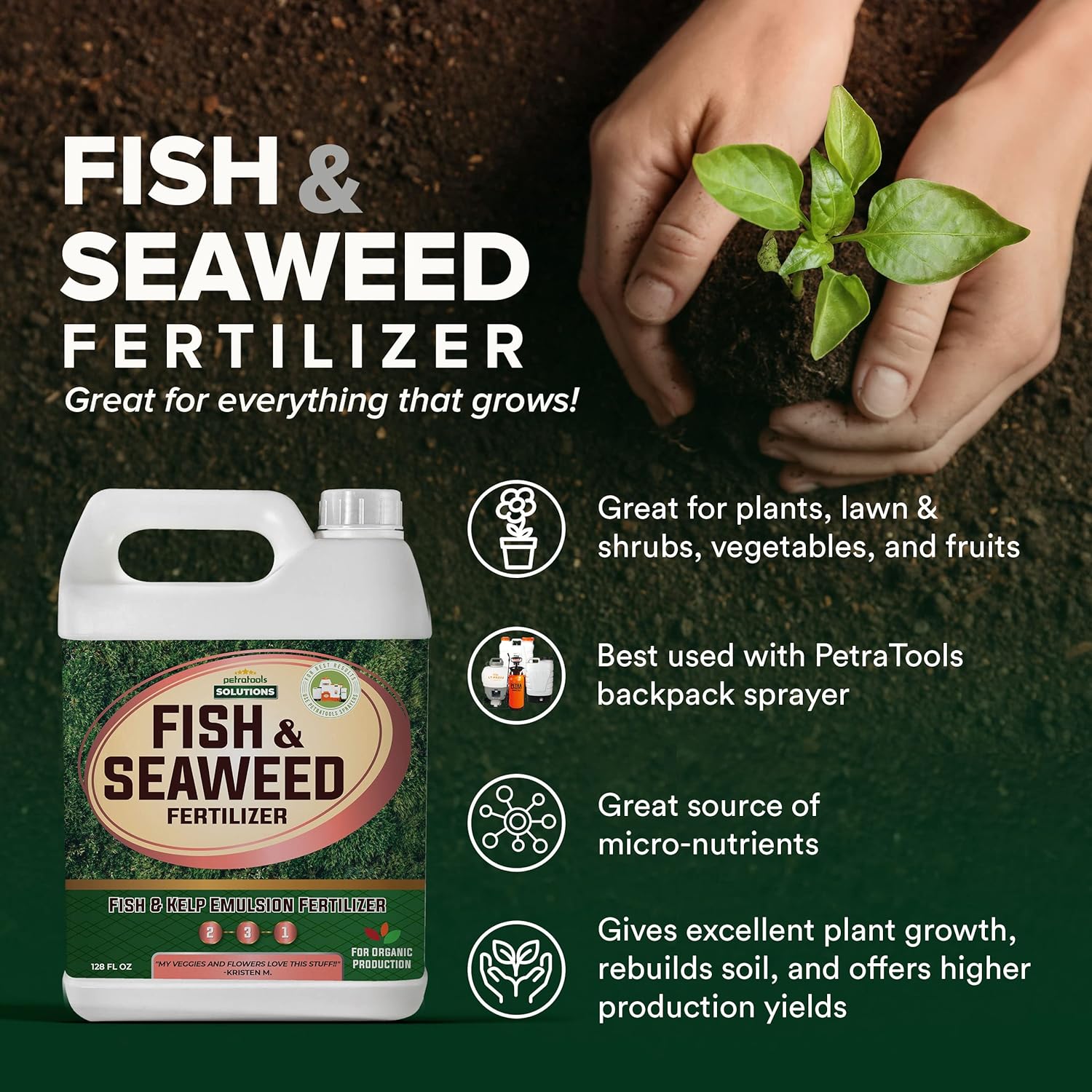 PetraTools Liquid Fish & Seaweed Fertilizer, Fish Emulsion Fertilizer for Vegetables, Fruits & Plants, Liquid Seaweed Fertilizer, Fish Fertilizer for ...
