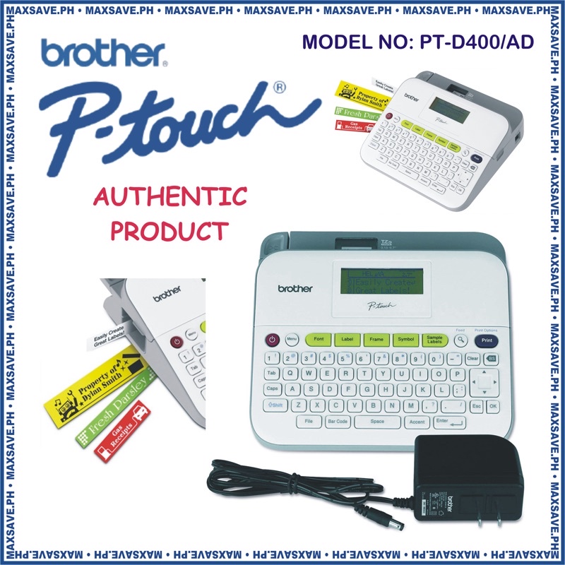 › Brother-PT-D400-Label-MakerBrother P-Touch PT-D400 Desktop Label Maker (PTD400) The Brother PT-D400 features a large keyboard with intuitive one-touch keys that make it simple to set the label formatting. With a crisp display that shows you exactly what you type, creating detailed labels with up to five lines of text and graphics is an easy task. Plentiful Templates and Fonts Brother P-touch PTD400 | Label Maker - Brother The PT-D400 is an easy to use label maker that allows you to quickly create personalized, professional-looking labels. With 14 fonts, 10 font styles, over 600 symbols plus barcodes, this versatile label maker can meet virtually all your home and office labeling needs. Just type, format with one-touch keys and print.