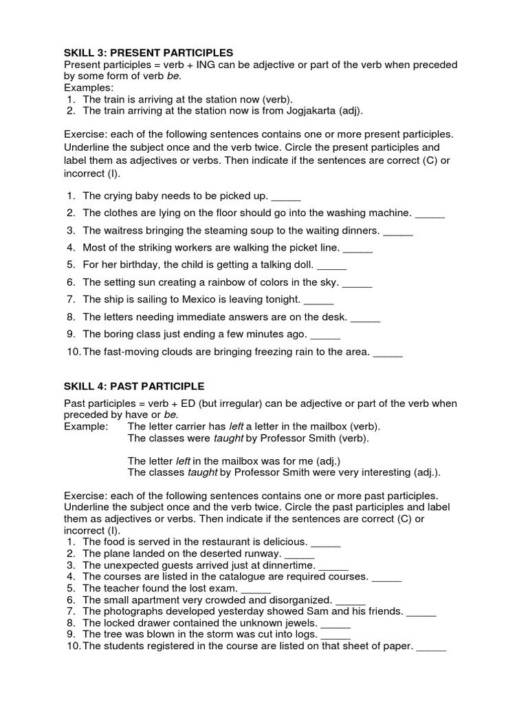 Active voice vs. passive voice | Technical Writing | Google … 27.08.2021 · passive verb = form of be + past participle verb Although the preceding formula looks daunting, it is actually pretty simple: A form of be in a passive verb is typically one of the following words: is/are; was/were; A past participle verb is typically a plain verb plus the suffix ed. For example, the following are past participle verbs: interpreted; generated; formed; … en.wikipedia.org › wiki › Grammatical_tenseGrammatical tense - Wikipedia Examples which combine both types of tense marking include the French passé composé, which has an auxiliary verb together with the inflected past participle form of the main verb; and the Irish past tense, where the proclitic do (in various surface forms) appears in conjunction with the affixed or ablaut-modified past tense form of the main verb. Grammatical tense - Wikipedia Tense in syntax is represented by the category label T, which is the head of a TP (tense phrase). In particular languages Latin ... The perfect past doubles as the perfective aspect participle and the imperfect past conjugations act as the copula to mark imperfect past when used with the aspectual participles. Hindi-Urdu has an overtly marked tense-aspect-mood system. … eslgrammar.org › irregularIrregular Past Tense Verbs | 75+ Important ... - ESL Grammar Apr 23, 2019 · Here is a list of commonly used irregular verbs with their base form, simple past form and the past participle. BASE FORM: SIMPLE PAST: PAST PARTICIPLE. Be: Was, Were: