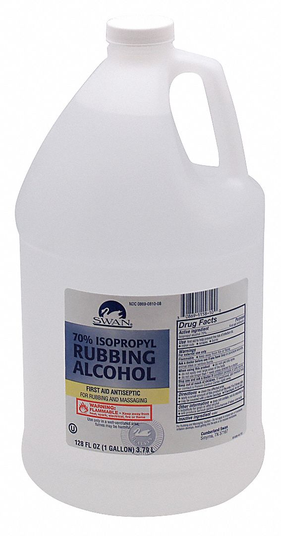 Isopropyl Alcohol: Details from the FDA, via OTCLabels.com 91% Isopropyl ALCOHOL. First Aid Antiseptic. For treatment of minor cuts & scrapes. Square bottles uses less plastic than a similarly sized round bottle. Recyclable (If available in your area) WARNING FLAMMABLE Keep away from heat, spark, electrical, fire or flame. Use only in a well-ventilated area; fumes may be harmful.