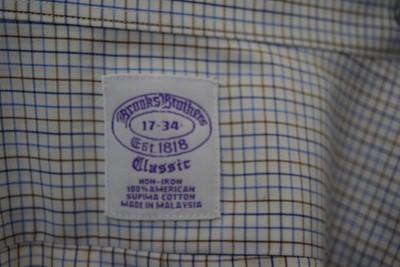 Brooks Brothers 16.5 34/5 Slim Fit Purple Label Cut ... - eBay Brooks Brothers 16.5 34/35 Slim Fit Purple Label shirt Blue with White PinStripes Excellent! 100% Cotton Made in Malaysia!