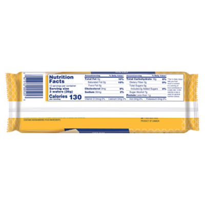 Nabisco Nilla Wafers Nilla Mini Wafers 11 oz - SmartLabel™ Nutrition Facts About 10 Servings Per container Serving Size 20 wafers (30g) Amount Per Serving Calories 140 % Daily Value * Total Fat 6 g 9.0% Saturated Fat 1.5 g 7.0% Trans Fat 0 g Cholesterol 5 mg 0.0% Sodium 115 mg 5.0% Total Carbohydrate 21 g 7.0% Dietary Fiber 0 g 0.0% Total Sugars 11 g Protein 1 g Vitamin C 0.0% Calcium 0.0% Iron 6.0%