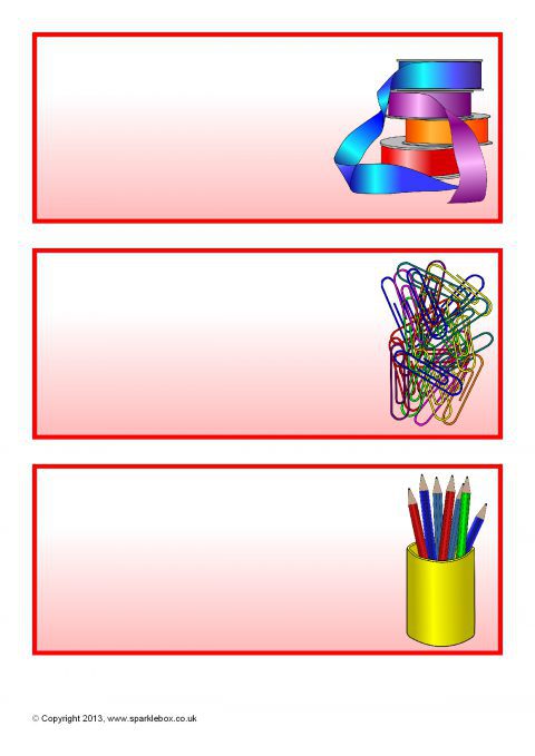 Classroom Signs and Labels Printables for Primary Schools - SparkleBox Plain Editable Classroom Label Templates (SB9308) Add your own text to a variety of classroom label backgrounds with coloured borders using Microsoft Word. The labels can be resized in Word to suit your needs, and the text size and font can also be altered easily. Use these templates to create labels for drawers, pegs, resources and learning areas.