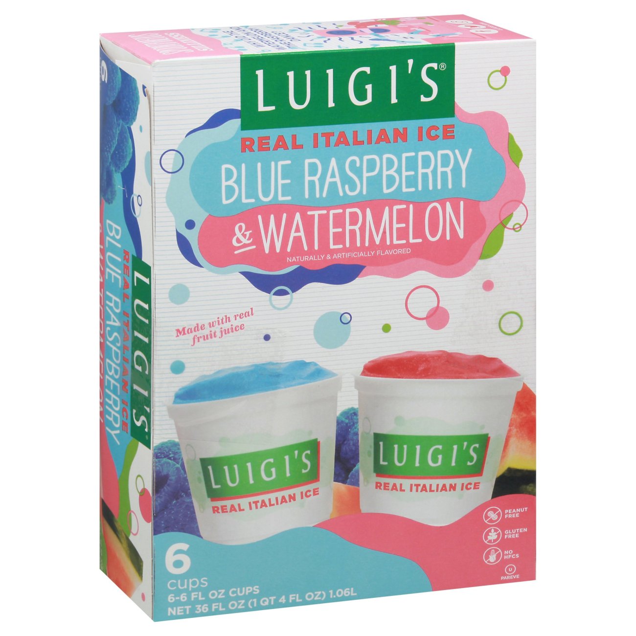 Luigi's Blue Raspberry and Watermelon Italian Ice, 6 ct