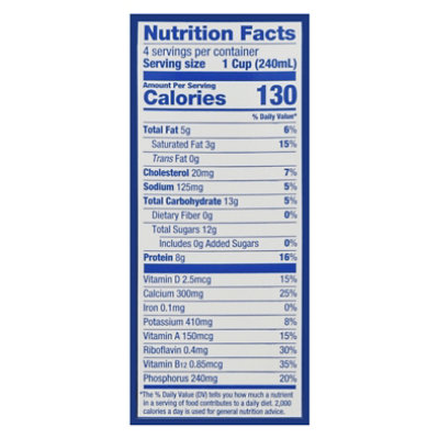 Nutritional Facts for Lactaid Milk - LIVESTRONG.com One cup of Lactaid whole milk has 160 calories, 8 grams fat — 5 grams saturated fat, 35 milligrams cholesterol, 125 milligrams sodium and 350 milligrams ...