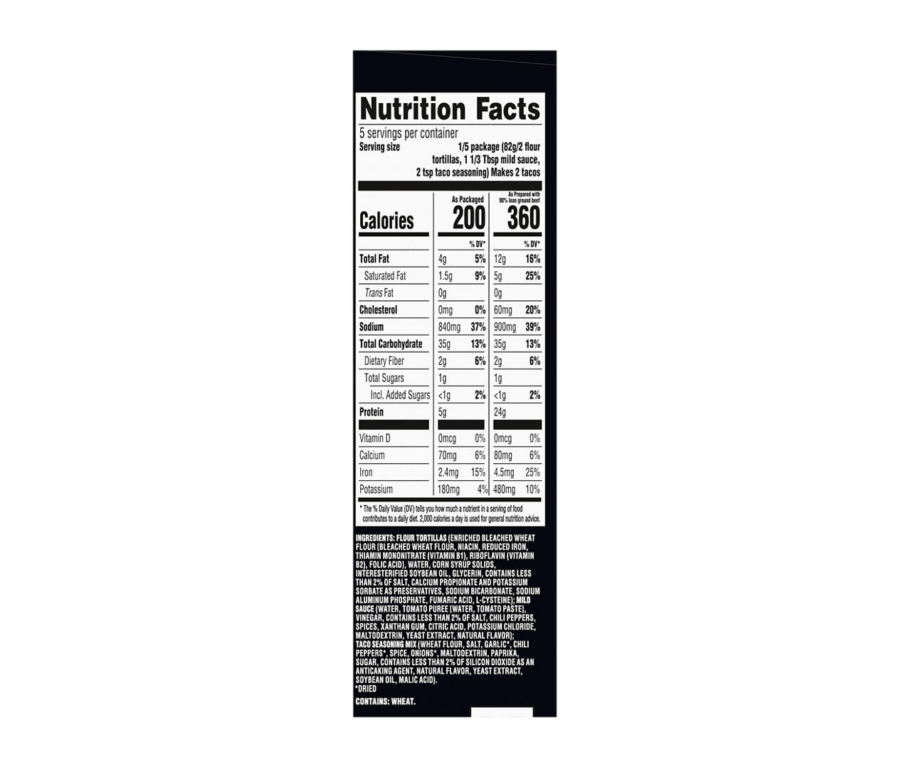 TACO BELL NUTRITIONAL INFORMATION - assets.ctfassets.net soft taco supreme i pulled oats® spicy i sauce, mild 136 269 1114 13,0 6,2 254,5 20,4 2,1 18,1 taco bell nutritional information 1/2020. menu item serving size (g) calories (kcal) kilojoules (kj) total fat (g) saturated fat (g) sodium (mg) garbohydrates (g) sugars (g) protein (g)